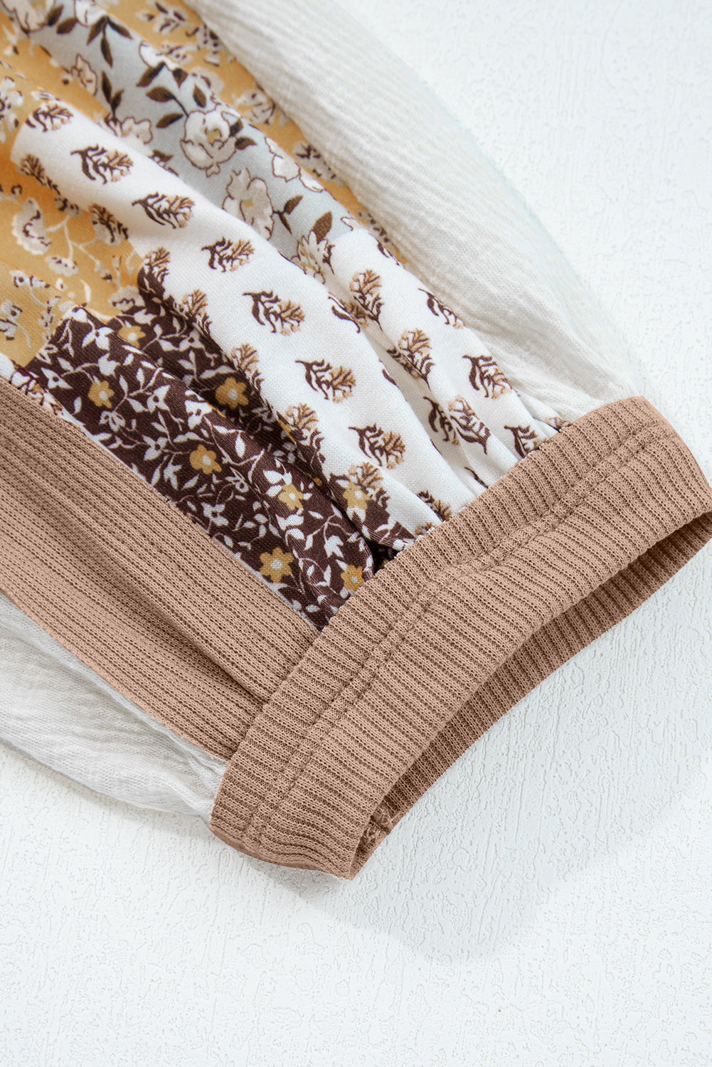 White Floral Printed Contrast Patchwork Long Sleeve Top